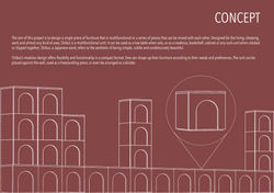 The design is inspired by the paintings of Giorgio de Chirico, featuring the characteristic arch. Shibui is a multifunctional unit, with the intention to have it adapt to any kind of interior setting, giving it an infinite possibility of functions. Shibui is Japanese for simple and unobtrusive beauty, and this piece of furniture has that feature as its aesthetic in order to mould into the multitude of spaces along with a complex construction detail on its inside.